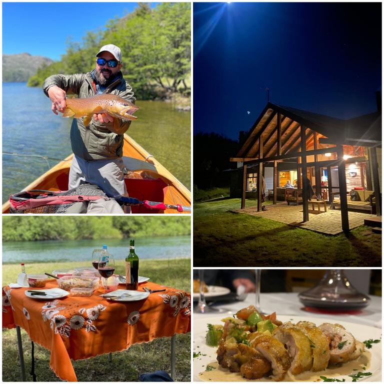 Notre partenaire, guide mais aussi chef cuisinier comme son épouse, possède dans la région d'Esquel un magnifique Lodge de pêche au bord de l'eau où vous serez hébergé en formule "All Inclusive" en chambre double et pension complète dont les pique-niques, préparés au bord de l'eau par les guides, mais aussi avec des dîners qui vous surprendront par leurs qualités et leurs variétés et où vous dégusterez d'excellentes spécialités, dont les fameux "Asados", grillades de viandes locales, toujours accompagnés des meilleurs vins argentins. Ambiance gaucho garantie !